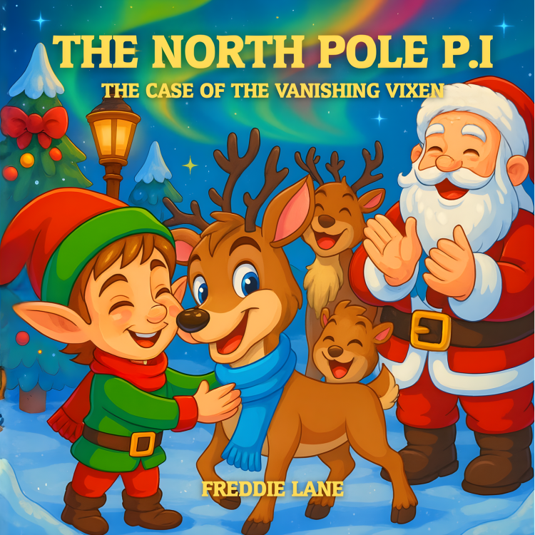 It's Christmas Eve at the North Pole, and everything is perfectly organized... until Santa looks over his sleigh team and realizes one reindeer is missing! Vixen, the stealthiest of the reindeer, has vanished without a trace! But Pip, the newest-and smallest-North Pole P.I. (that's Principal Investigator!), sees a clue: a trail of faintly shimmering hoofprints leading away from the stable. Pip follows the twinkling trail past the chaotic Toy Testing Department and through the festive Snowman Village. But when the mysterious tracks lead to the dimming Northern Lights, Pip realizes this is no ordinary mystery. Vixen hasn't run away-she's on a secret, quiet mission to gather unlikely supplies to mend the world's fading magic! Join Pip as he solves the case of the vanishing reindeer and discovers that the greatest gifts aren't always in the sleigh, and some mysteries are meant to be solved with heart.